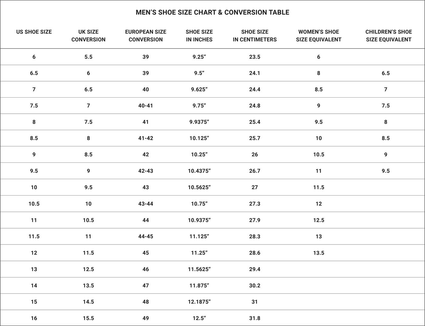 Men S Shoe Size Guide Jay Butler