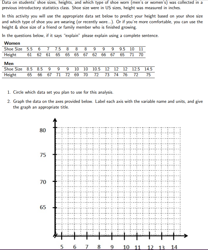 Solved Use The Data From The Women S Shoe Size Also Use Chegg Com